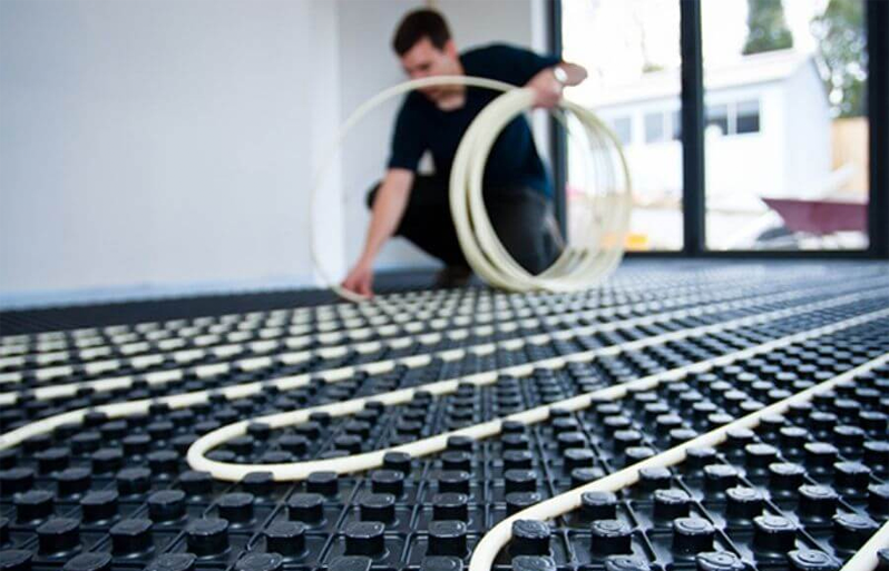 Improve your lifestyle with underfloor heating, roller blind infrastructure and smart home infrastructure concept.